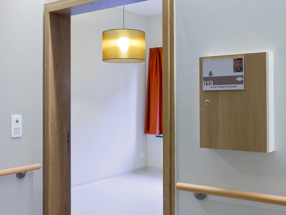 Naast de bewonersruimtes heeft elke afdeling een aparte zorggang met aangepaste baden en verzorgingsruimtes. Dit zorggedeelte is niet toegankelijk voor bezoekers, zodat de woonomgeving huiselijk en vertrouwd blijft.